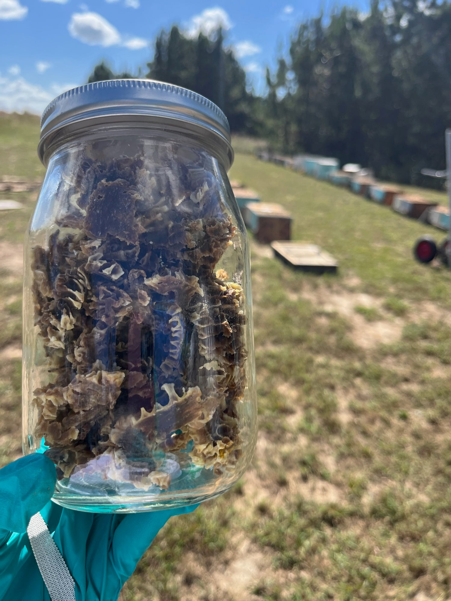 We collect our propolis directly from our local apiary. Propolis often falls to the ground when hives are opened or gets pushed out of the hive during the routine cleaning that honey bees perform to keep their home tidy.