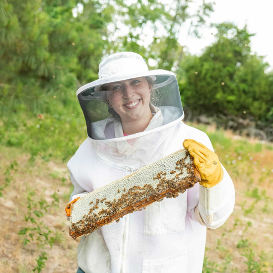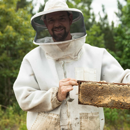Joe’s passion for beekeeping started unexpectedly in 2012 when he found a massive hive inside the wall of our home! After witnessing the power (and incredibly sticky mess) of a thriving hive - he was hooked on bees. His fascination and knowledge has only grown as we expanded our apiary from 3 hives in our own backyard to hundreds of hives hosted in 5 different locations around middle Georgia.